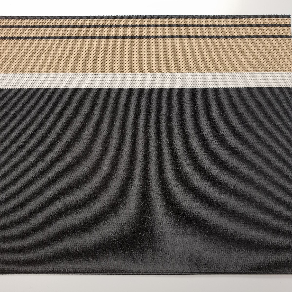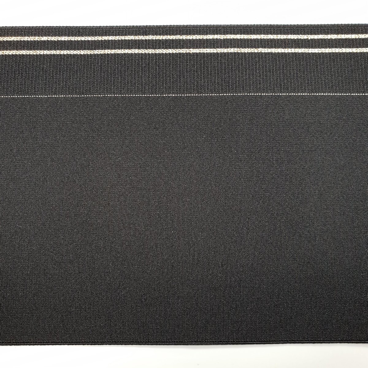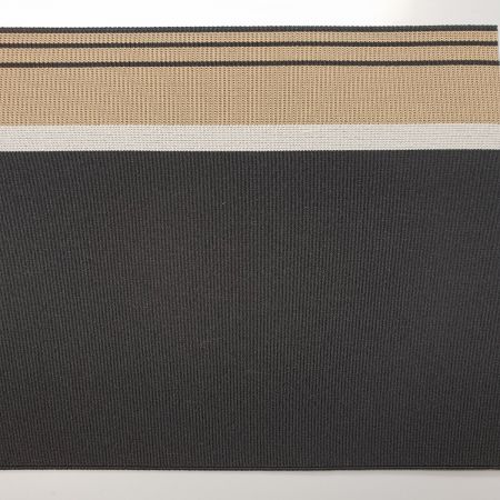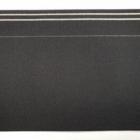 This article combines two different weaving patterns in one elastic: the lower section is a standard elastic ribbon for shoes, while the upper one is a gros-grain-like elastic.