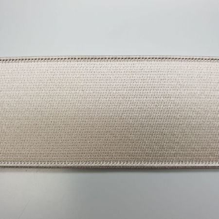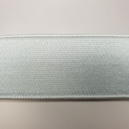 La tejedura de esta cinta elástica, que comporta mayor visibilidad del hilado viscosa en trama, da un aspecto brillante a su superficie y resulta en una elegancia refinada y clásica. El artículo puede ser producido a petición en versión doble cara.