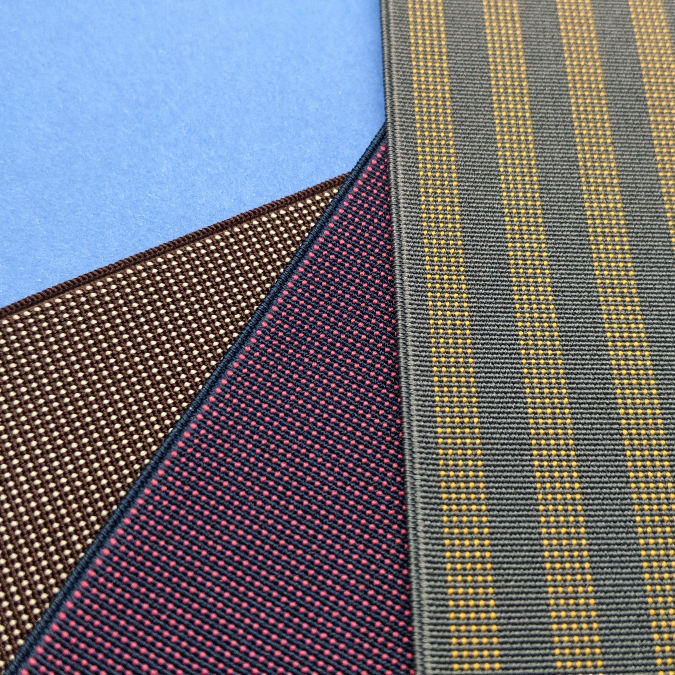 Il nostro classico elastico marchio ETRE', da 40 anni sinonimo di qualità e creatività per centinaia di utilizzatori in tutto il mondo, può essere prodotto su ordinazione anche con effetto mélange. Gli abbinamenti bicolore esaltano la speciale tessitura di questo articolo, potete scegliere tra tutti i colori delle nostre cartelle per creare la vostra combinazione preferita.